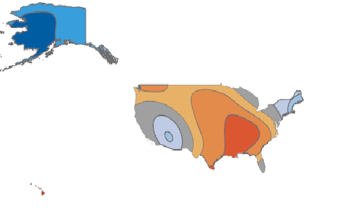consists of layers which each represent a forecasted temperature for 6-10 days from now. Forecasts are given as relative percentages and are represented as above, near, or below normal.